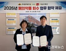 [신경북뉴스] 의성군보건소와 의성우체국은 지난 10월 28일 폐의약품의 안전한 회수와 환경오염 예방을 위한 ‘폐의약품 회수 업무협약’을 체결했다고 밝혔다. 의성군은 현재 보건기관, 약국, 소방서 등 총 117개소에 폐의약품 전용 수거함을 설치·운영하고 있다. 기존에는 보건소가 직접 수거를 담당했으나, 이번 협약으로 우체국이 관내 약국 21개소의 폐의약품을 월 1회 정기적으로 수거해 보건소에 전달하게 된다. 이를 통해 보건소의 업무 부담을 경감하고, 보다 효율적이고 안정적인 수거체계 구축이 가능할 것으로 기대된다. 의성군은 지난해 경로당 등 52개소에 수거함을 추가 설치해 주민의 폐의약품 배출 접근성을 높였으며, 올바른 배출 문화 확산을 위한 홍보활동도 지속적으로 전개하고 있다. 의성군은 지난해 경로당 등 52개소에 수거함을 추가 설치해 주민의 폐의약품 배출 접근성을 높였으며, 올바른 폐의약품 배출문화 확산을 위한 홍보 활동도 지속적으로 전개하고 있다. 그 결과 2024년 한 해 동안 총 917kg의 폐의약품을 회수했고, 2025년 9월 말 기준으로는 822kg을 회수하는 등