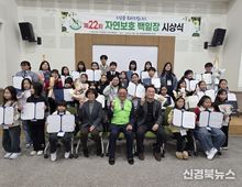 [신경북뉴스] 구미시는 12월 17일 새마을운동테마공원 연수관에서 자연보호구미시협의회(회장 오석우) 주관으로 제22회 자연보호 백일장 시상식을 개최했다. 이날 행사에는 수상 학생과 학부모 등 100여 명이 참석해 의미를 더했다. 자연보호 백일장은 자연의 소중함과 환경보전의 가치를 문학으로 표현하는 행사로, 격년제로 열리고 있다. 이번 제22회 백일장은 지난 11월 1일 금오산 잔디광장에서 학생과 학부모 등 300여 명이 참여한 가운데 진행됐다. 외부 전문가의 공정한 심사를 거쳐 총 48명이 최종 수상자로 선정됐다. 부문별·연령별 최고상인 최우수상에는 구미시장상 9명이 이름을 올렸고, 우수상은 구미교육지원청 교육장상 12명, 장려상은 자연보호구미시협의회장상 27명에게 수여됐다. 시상 이후 학생들은 입상작을 모아 엮은 작품집을 함께 살펴보며 서로의 글에 대한 감상을 나누고, 환경 위기에 대한 인식을 공유했다. 글쓰기를 매개로 자연보호의 의미를 되새기고 실천 의지를 다지는 시간도 이어졌다. 손양숙 환경정책과장은 “기후변화가 일상이 된 지금, 학생들이 자연