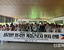 [신경북뉴스] 청도군은 2026년 상반기 외국인 계절근로자 도입 및 공공형 계절근로자 예비선발을 위해 12월 9일부터 12일까지 필리핀 카빈티시를 방문해 근로자 선발 및 교육을 진행했다고 밝혔다. 이번 현지 선발은 지속 증가하는 농촌 인력 수요에 적극 대응하기 위한 것으로, 군은 카빈티시 계절근로자 지원자들을 대상으로 신분 확인, 체력 테스트, 면접 등 다단계 절차를 직접 수행해 성실하며 안정적으로 근무 가능한 근로자 100명을 최종 선발했다. 군은 특히 공공형 계절근로자 도입을 위해 지역 농협(청도농협)과 공동으로 면접을 진행해, 2026년부터 일일 단위로 농가에 투입 가능한 공공형 인력풀을 확보했다. 선발된 근로자들은 한국 입국 전까지 기본 한국어, 농작업 안전수칙, 무단이탈 방지, 한국 문화 이해 등 필수 교육을 이수하게 된다. 또한 군은 카빈티시 시청을 방문해 외국인 계절근로자 프로그램 운영성과를 공유하고, 근로자 이탈 방지 대책 및 고용환경 개선을 위한 협력 강화 방안을 논의했으며 필리핀 현지 농장 및 농업기술센터를 방문하여 국내에 적용 가능한 농업기술 발굴 및 국제 교류 확대 가능성도 검토했다. &n