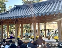 [신경북뉴스] 대구 북구청은 북구문화원(원장 이연희) 주최로 10월 29일 구수산공원 내 원모재에서 중양절을 맞아‘범국회 시연회’가 열렸다고 밝혔다. ‘범국회’는 옛 선비들이 국화가 만개한 음력 9월 9일 중양절에 국화주와 차를 나누며 시와 음악을 즐기던 전통 풍류문화로, 이번 행사는 잊혀가는 세시풍속을 되살리고 지역 주민들에게 전통문화 향유의 장을 제공하기 위해 마련됐다. 이날 행사에는 지형재 북구 부구청장, 김정립 칠곡향교 전교, 이정웅 팔거역사문화연구회 초대회장 등 70여 명이 참석했으며, 향토사학자 송은석 선생의 진행으로 범국회 시연, 경전 암송, 시조창, 선비춤, 퓨전국악 공연 등이 다채롭게 펼쳐졌다. 이연희 북구문화원장은 “범국회는 선조들의 격조 높은 풍류정신이 살아 있는 소중한 전통문화로, 오늘 행사를 통해 우리 지역의 역사와 선비문화가 더욱 가까이 느껴지길 바란다”고 전했다. 배광식 북구청장은 “앞으로도 북구청은 전통문화의 가치를 되살리고 지역의 문화적 자긍심을 높이는 다양한 문화사업을 적극 추진하겠다”고 밝혔다.