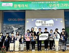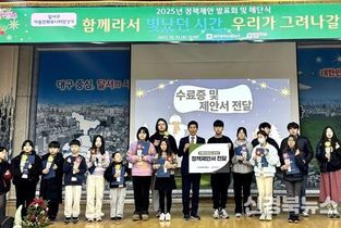 [신경북뉴스] 대구 달서구는 달서구 홍보대사인 거대 원시인 조형물 ‘이만옹’ 주변에 업사이클링 경관조명을 설치하고, 주민과 함께하는 친환경 연말 캠페인 ‘작은 빛들이 모여 내일을 밝힙니다’를 운영한다. 이번 캠페인은 버려진 200여 개의 PET병을 재활용해 제작한 나무 형태의 조명 장식과 산타모자를 쓴 이만옹을 중심으로, 연말의 따뜻한 분위기 속에서 지속가능한 환경 실천 메시지를 시민들에게 전달하고자 기획됐다. 달서구는 이번 전시를 통해 “작은 실천이 모여 내일을 밝힌다”는 메시지를 시각적으로 구현하고, 주민이 직접 참여하는 생활 속 기후행동 문화 확산을 목표로 하고 있다. 업사이클링 조명 전시는 일회용 플라스틱 사용을 줄이고 자원순환의 가치를 알리기 위한 취지로 마련됐다. 특히 조명 제작 과정에는 지역 어린이집 원아를 비롯해 초·중·고등학생과 지역 주민들이 직접 참여해, 각자의 소원과 지구에게 전하고 싶은 메시지를 손글씨로 적어 빛의 조형물에 담았다. 연말을 맞아 ‘지구에게 보내는 편지’라는 마음으로 완성된 조명은 환경보호의 중요성과 시민들의 따뜻한 정성을 함께 비추며 전시에 의미를