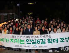 [신경북뉴스] 대구 수성구 여성친화도시 행복수성 구민참여단(단장 최숙희)은 지난 28일 단원 50여 명과 함께 ‘뚜비가 지키는 안심6길’ 확대 조성 구간에 대한 합동 모니터링을 실시했다. 이번 모니터링은 지난해 주민참여예산으로 조성된 ‘뚜비가 지키는 안심6길’의 짧은 구간(70m)에 대해 추가 연장을 요청한 주민 의견을 반영해, 확대 조성된 구간을 중심으로 진행됐다. 구민참여단과 범어3동 주민, 공무원들이 함께 현장을 둘러보며 조성 결과를 확인하고 개선 사항을 공유했다. ‘뚜비가 지키는 안심6길’은 야간 조도가 낮아 주민들의 이용이 다소 제한적이었던 범어3동 청구성조타운 뒤 골목길에 발광 엘이디(LED) 경관조명을 설치해, 밝고 안전한 보행환경으로 개선한 사업이다. 이번 확대 조성으로 주민들이 편안하게 이용할 수 있는 생활안전 공간으로 자리잡았다. ‘뚜비가 지키는 안심길’ 조성사업은 여성친화도시 수성구가 추진하는 대표적인 지역 안전 증진 사업으로, 안전 취약지역에 엘이디(LED) 경관조명을 설치해 주민의 체감 안전도를 높이는 것을 목표로 하고 있다. 2021년 황금동 주택 밀집 지역의 안심1길을 시작으로 202
