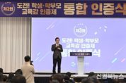[신경북뉴스] 경북교육청은 24일 경주시에 있는 더케이호텔경주 거문고홀에서 ‘제3회 도전! 학생․학부모 교육감 인증제 통합 인증식’을 열고, 인증 학생과 학부모, 가족 등 350여 명이 참석해 도전과 성취의 의미를 함께 나눴다고 밝혔다. 이번 인증식은 ‘작은 도전, 큰 성취, 더 큰 꿈’을 주제로, 학생을 대상으로 한 ‘도전! 꿈 성취 교육감 인증제’와 학부모를 대상으로 한 ‘도전! 삶 성취 교육감 인증제’를 통합 운영해 학생과 가정이 함께 성장하는 도전 문화를 확산하기 위해 마련됐다. ‘도전! 꿈 성취 교육감 인증제’는 2023년부터 운영 중인 경북형 성장 중심 인성교육 프로그램으로, 인문․봉사․체육․예술․외국어․통합 등 다양한 영역에서 학생 스스로 목표를 설정하고 이를 성취하는 과정을 통해 자기주도성과 인성을 기르도록 지원하고 있다. 지난 3년간 총 463명의 학생이 인증을 받으며, 학생들의 자발적인 도전과 성장을 이끄는 대표적인 인성교육 프로그램으로 자리매김하고 있다. 2025년부터 시작한‘학부모 도전! 삶 성취 교육감 인증제’는 학생생활과 주관으로 학부모가 학교 참여와 자녀 교육, 가정 속 실천 과제를