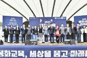 [신경북뉴스] 경상북도봉화교육지원청은 10월 23일 봉화읍 내성천 주무대 일원에서 ‘정향 봉화교육, 세상을 품고 미래를 디자인하다’를 주제로 '2025 봉화교육한마당'을 성황리에 개최했다. 이번 행사는 봉화교육발전특구 사업의 일환으로, 학생의 배움과 삶을 지원하는 교육 주체 간 소통과 협력의 장으로 마련됐으며, 초·중·고 학생과 교원, 학부모, 지역주민 등 약 2,000여 명이 참여해 AI·창의융합 중심의 체험과 진로탐색, 나눔의 교육축제를 함께 즐겼다. 행사는 청량중학교 오케스트라와 봉꽃송이청소년합창단의 식전공연으로 시작해, 학생들이 참여한 이중언어 말하기와 전국과학전람회 탐구 결과 발표가 이어졌다. 개막 퍼포먼스에서는 교육공동체가 함께 정향 봉화교육의 비전을 선포하며 미래 교육의 방향을 다졌다. 행사장에는 디지털-창의융합 한마당 33개 부스와 진로체험 한마당 30개 부스 등 총 60여 개의 체험 공간이 운영되어 학생들의 발길이 끊이지 않았다. 특히, ‘AI 인형뽑기’, ‘로보마스터 플레이그라운드’, ‘국립백두대간수목원 직업탐구’, ‘VR 어트랙션 체험’ 등 최신 기술과 진로가 결합된 부스가 큰 호응을 얻으며