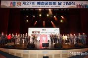 [신경북뉴스] 예천군은 16일 오후 3시, 예천군문화회관에서 ‘제27회 예천군민의 날 기념식’ 을 성황리에 개최했다. 이번 행사는 기관·단체장과 군민 등 500여 명이 참석한 가운데, 군민의 자긍심을 높이고 군민 화합을 도모하는 뜻깊은 자리로 마련됐다. ‘예천군민의 날’은 군민의 애향심을 고취하고 지역 발전에 기여한 군민의 노고를 격려하기 위해 1999년에 제정됐다. 이날 수여한 예천군민상은 지역사회 발전에 헌신하고 군민의 귀감이 된 모범 군민에게 수여됐으며, 1986년부터 2024년까지 총 38회, 153명의 수상자를 배출했다. 기념식은 식전 공연을 시작으로 △군민헌장 낭독 △군민상 시상 △기념사 및 축사 △주제영상 상영 △희망선물 퍼포먼스 △주민 동아리 공연 순으로 진행됐다. 김학동 군수는 기념사에서 “오늘의 자랑스러운 예천은 군민 여러분의 땀과 노력이 만들어낸 소중한 결실로써, 앞으로도 경북의 중심 도약하는 예천을 위해 군민 모두 함께 힘을 모아 주시기를 당부드린다”고 말했다.