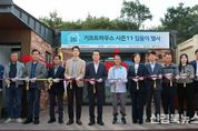 [신경북뉴스] 의성군은 9월 29일 11시, 의성군 점곡면 구암리 441에서 민관 협력으로 추진된 ‘기프트하우스 시즌11’준공식을 개최했다. 이번 사업은 지난 3월 발생한 의성 대형산불로 큰 피해를 입은 기초생활수급자 가구의 주거 회복을 지원하기 위해 추진됐다. 의성군 통합돌봄과가 (사)함께웃는세상이 주관한 공모사업에 선정되면서 본격적으로 진행됐다. 새 보금자리 마련에는 다양한 기관과 기업이 함께했다. 보금자리지원은 ㈜현대엔지니어링(대표이사 주우정), 사단법인 함께웃는세상(사무국장 서충환), (재)건설산업사회공헌재단에서 모듈러 하우스(15평)를 후원했으며, 한국국토정보공사의성지사(지사장 정희원) 및 의성군 지역업체인 ㈜오원산업(대표 오치원), ㈜공간인테리어(대표 김현덕), 하나건축(의성건축사협회장 김재우), 상도토목설계(대표 김상도)에서 측량, 설계 및 기반시설 공사에 재능기부를 동참했다. 입주 대상자인 김씨(63세)는 “어려운 형편 속에서도 따뜻한 보금자리를 마련해주신 김주수 군수님과 현대엔지니어링을 비롯한 유관기관에 진심으로 감사드린다”며, “단순한 집을 넘어 삶의 희망과 용기를 주셔서 앞으로 더욱 열심히