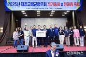 [신경북뉴스] 재경고령군향우회(회장 김칠현)는 지난 9월 25일 서울에서 '2025년 재경고령군향우회 정기총회 및 한마음대회' 행사를 가졌다. 이번 행사에는 재경고령군향우회 이정국 상임고문을 비롯해 이남철 고령군수, 이철호 고령군의회의장과 군의원, 지역 기관단체장, 읍면장 및 향우회원 300여 명이 참석하여 따뜻한 고향의 정을 나누었다. 이장환 前회장의 개회사로 시작된 정기총회는 ‘대가야 고도’로 지정된 고향의 발전상을 함께 나누고, 지난 8년간 재경고령군향우회를 훌륭하게 이끌어 온 박광진 직전 회장과 향우회 발전에 기여한 회원에 대한 공로패 수여, 주요 내빈들의 축사와 격려사 등으로 진행됐으며, 특히 이날 행사에는 재경고령군향우회 이정국 상임고문께서 5백만원, 재경고령중26․10회에서 3백만원의 고향사랑기부를 통해 따듯한 고향의 정을 나누는 뜻깊은 행사로서 그 의미를 한층 더했다. 한편, 재경고령군향우회는 경제, 행정, 사회, 문화 등 각계각층에서 활동하고 있는 3,000여 명의 고령 출신 인사들로 구성되어 있으며 지역의 부족한 인적자원을 보완하기 위한 중앙 인적 네트워크 구축으로 향우회원들의 화