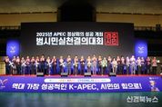 [신경북뉴스] 경주시가 2025년 APEC 정상회의 개막을 한 달 앞두고 시민의 힘을 하나로 모아 성공개최 의지를 다졌다. 시는 30일 경주실내체육관에서 ‘2025년 APEC 정상회의 성공개최 범시민실천결의대회’를 성황리에 개최했다고 밝혔다. 이번 행사에는 APEC 범시도민지원협의회(공동회장 박몽룡·이상걸) 소속 회원을 비롯해 유관기관, 시민단체, 자원봉사자 등 경주시민 3천여 명이 참석해 시민과 함께하는 APEC의 진정한 의미를 되새겼다. 특히 주낙영 경주시장을 비롯해 김석기 국회 외교통일위원장, 이동협 경주시의장, 최병준 경북도의회 부의장을 비롯해 시·도의원 전원이 참석해 시민과 함께 손님맞이 실천 결의를 다지고 성공 개최를 향한 열기를 더했다. 행사장 내부에는 시민단체들이 자체 제작한 손님맞이 실천 결의 현수막이 곳곳에 걸려 있어, APEC 성공개최를 향한 시민들의 뜨거운 참여 의지를 생생하게 보여주었다. 본행사에 앞서 참석자들은 ‘APEC 시민 10대 실천과제’를 함께 되새기며, 모든 시민이 APEC의 주인으로서 행동할 때 성숙한 시민의식과 지속가능한 경주를 만들어 갈 수 있다는 공감대를 형성했다. 이어 APEC 유치 도전부터 개최 준비까지의 여정을