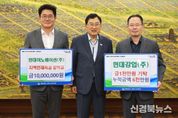 [신경북뉴스] 현대강업(주)(회장 이상춘)과 자회사 현대이노베이션(주)(대표 양희성)은 30일 지역 인재 육성과 교육 발전을 위해 각각 1,000만 원씩, 총 2,000만 원의 장학금을 (재)경주시장학회에 기탁했다. 2000년에 설립된 현대강업(주)는 열연·냉연·도금 강판과 특수강을 취급하는 철강 전문업체로, 경주시 외동읍 내외로에 본사를 두고 있다. 특히 이상춘 회장은 지금까지 총 6,000만 원의 장학금을 기탁하며 꾸준한 지역사랑을 이어오고 있다. 자회사인 현대이노베이션(주)는 2004년 설립된 자동차 전장부품 전문업체로, 사출금형 제작과 성형·조립 기술력을 기반으로 한 경쟁력을 갖추고 있으며 역시 외동읍 내외로에 위치한다. 이상춘 회장과 양희성 대표는 “지역 출신의 우수한 학생들이 희망을 잃지 않고 훌륭한 인재로 성장하는 데 도움이 되길 바란다”며 “앞으로도 지역사회와 상생하며 지속 가능한 사회공헌 활동을 이어가겠다”고 밝혔다. 주낙영 경주시장(경주시장학회 이사장)은 “자라나는 학생들과 지역의 어려운 이웃을 위해 소중한 나눔을 실천해 준 현대강업과 현대이노베이션에 깊이 감사드린다”