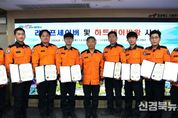 [신경북뉴스] 경북소방본부는 지난 29일 소방본부 7층 작전회의실에서 위급한 재난·사고 현장에서 신속하고 헌신적인 대응으로 소중한 생명을 지켜낸 구조대원과 구급대원의 공로를 기리기 위해 라이프세이버 및 하트세이버왕 수여식을 개최했다. 지난 한 해 동안 각종 위험 현장에서 인명 구조에 헌신한 소방위 유영철, 소방장 박준현, 소방장 임창래 등 3명은 뛰어난 구조 활동을 인정받아 제5회 라이프세이버로 선발됐다. 또한 지난해 하반기 구급 현장에서 심정지 환자를 소생시킨 소방위 황성구, 소방위 김태현, 소방장 김기준, 소방장 김제규, 소방교 김태익 등 5명은 제9회 하트세이버왕으로 선정돼 표창장을 수여 받았다. 이번에 선정된 8명의 대원들은 모두 각자의 현장에서 침착한 판단과 숙련된 대응 능력을 바탕으로 전문적인 구조·응급처치를 실시해 환자의 생명을 되살린 공적을 인정받았다. 라이프세이버는 재난 및 각종 사고 현장에서 인명 구조 등 특별한 공적을 세운 구조대원에게 수여하는 인증이며, 하트세이버왕은 신속하고 전문적인 응급처치로 생명을 소생시켜 하트세이버를 5회 수여받은 구급대원에게 부여된다. 이