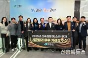 [신경북뉴스] 고령군은 1월 22일 군수실에서 지역사회를 향한 온정의 손길이 이어져 주위를 훈훈하게 하고 있다. 이날 기탁식에는 (사)한국나눔연맹을 시작으로 대현건설(주), 우륵밴드 회원, 합동파렛트, 태산개발(주), (사)전국한우협회 고령군지회, ㈜중앙금속, ㈜중앙주철이 차례로 방문하여 지역 발전을 위한 나눔의 행보를 함께했다. 가장 먼저 나눔의 문을 연 (사)한국나눔연맹(총재 안천웅)은 겨울철 소외계층의 든든한 먹거리를 위해 김치(10kg) 500박스, 쌀(10kg) 500포, 라면(12개입) 500박스 등 대규모 물품을 기탁했다. 특히 (사)한국나눔연맹은 매년 잊지 않고 고령군을 위해 생필품과 식료품을 기부해오며 지역 복지 사각지대 해소에 든든한 버팀목이 되어주고 있다. 이어, 대현건설(주)(대표 김성기)은 사랑의 성금 300만원을 전달하며 온정을 더했다. 대현건설(주)은 평소 지역사회 공헌 활동에 깊은 관심을 가지고 실천해온 기업으로, 이번 기탁을 통해 기업의 이익을 지역에 환원하고 소외된 이웃들에게 실질적인 도움을 전하고자 하는 진심 어린 뜻을 모았다. 지역 문화