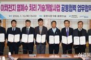[신경북뉴스] 포항시는 15일 시청 중회의실에서 이차전지 염폐수 처리를 위한 기술개발 공모사업에 대비한 ‘이차전지 염폐수 처리 기술개발 공동협력 업무협약’을 체결했다. 이번 협약은 지난달 19일 기후에너지환경부가 공고한 ‘이차전지 염폐수 처리 기술개발사업’과 관련해 공모 선정 이전 단계에서 향후 기술 실증과 현장 적용을 지원하기 위한 지방정부와 참여기업 간 공동 협력체계 구축을 위해 추진됐다. 이날 협약식에는 포항시 일자리경제국장을 비롯해 경상북도 기후환경국장과 공모사업 주관기업인 ㈜범우, ㈜에코프로HN, ㈜테크윈, ㈜효림이엔아이, ㈜유앤유, ㈜엔이비 등 관계자 17명이 참석했다. 이차전지 염폐수는 고염분·고농도 특성으로 공공 처리가 어려워 현재 기업별로 증발농축법(MVR) 등 개별 처리시설을 설치해 대응하고 있으나 국내외 환경규제 강화와 환경보전에 대한 사회적 책임 증대, 산업용 전기요금 인상 등으로 기업 단독 대응에는 한계가 있으며, 이는 장기적으로 국가 이차전지 산업의 원가 경쟁력에도 영향을 미치고 있다. 이에 기후에너지환경부는 국가 첨단산업인 이차전지 산업의 지속가능성과 글로벌 경쟁력 강화를 위해 ▲이차전지 염폐수 무방류 공정 기술개발 ▲이차전지 염폐