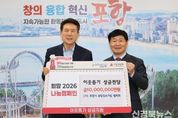 [신경북뉴스] 포항시는 15일 (사)포항시유망강소기업협의회가 ‘희망 2026 나눔 캠페인’에 동참하기 위해 1천만 원의 성금을 기탁했다고 밝혔다. 이날 전달식에는 박제서 협의회장(코아시스템 대표)을 비롯해 임원진, 회원사 등 총 10여 명이 참석해 지역사회와 함께하는 지속적인 나눔 실천에 뜻을 함께했다. 성금 전달식 이후에는 경기침체로 인해 겪는 기업 운영 과정의 애로사항을 공유하고, 지역과의 상생 동행을 위한 협의회의 역할에 대해 논의하는 시간을 심도 있게 가졌다. 앞서 협의회는 지난해 4월에도 지역인재 육성을 위한 1천만 원의 장학금을 기탁한 바 있으며, 이 외에도 저출생 극복 성금 전달 등 다양한 사회공헌 활동을 통해 지역사회와의 긴밀한 네트워크를 구축하고 있다. 이강덕 포항시장은 “기업의 경영 여건이 어려운 시기임에도 불구하고 신년을 맞아 지역사회를 위해 따뜻하고 귀한 마음을 나눠주심에 감사드린다”며, “전해주신 성금은 도움이 필요한 지역민들을 위해 소중히 활용하겠다”라고 말했다.
