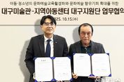 [신경북뉴스] 대구문화예술진흥원 대구미술관과 지역아동센터대구지원단(단장 이상열)은 지난 10월 15일 대구미술관에서 아동·청소년 문화예술교육 활성화와 문화예술 향유 기회 확대를 위한 업무협약을 체결했다. 이번 협약식에는 노중기 대구미술관장과 이상열 지역아동센터대구지원단장을 비롯해 양 기관 관계자들이 참석했으며, 지역 아동·청소년이 예술을 통해 성장할 수 있는 지속 가능한 협력체계 구축을 약속했다. 협약에 따라 양 기관은 ▲대구미술관 전시 및 교육 프로그램에 ‘지역아동센터’와 ‘대구형 방과 후 틈새돌봄사업’ 아동·청소년의 참여 지원 및 독려 ▲아동·청소년 대상 맞춤형 문화예술교육 프로그램 공동 기획 및 운영 ▲프로그램 참여 효과 제고를 위한 자료 공유 및 교육 정보 교류 ▲기타 상호 발전을 위한 교육 관련 협력 등 다양한 분야에서 상호 협력하기로 했다. 특히 이번 협약을 계기로 지역아동센터 종사자 교사를 대상으로 한 전문교육 워크숍을 오는 10월 21일 대구미술관에서 진행한다. 프로그램은 열린 교육 ‘샤이닝 트레일즈’와 연계하여 현대미술의 새로운 접근 방식을 모색하고, 자연·빛·인간을 매개로 한