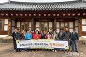 [신경북뉴스] 구미도시공사 산동하수처리팀이 문화적으로 소외되기 쉬운 농촌 지역 어르신들을 위해 기획한 문화체험 '우뚝2025' 행사를 지난 24일 성공적으로 마무리했다고 밝혔다. 선산읍 습례2리 어르신 20여분을 모시고 진행된 이번 행사는 구미도시공사가 운영 및 관리하는 시설을 활용, 다채로운 문화 체험 기회를 제공하며 어르신들의 사회적 고립감을 해소하고 삶의 행복감을 높이는 데 기여했다. 이는 지역소멸 극복에 대한 지역사회 노력에 동참하고 지역민과의 유대를 강화하기 위함이다. 이른 오전 습례2리 마을회관에서 출발한 어르신들은 ▲활기 넘치는 구미시승마장 견학 및 체험을 시작으로, ▲농촌융복합산업 인증을 받은 지역 업체에서 연잎밥 만들기 및 연자방공예 체험을 통해 전통의 멋과 맛을 만끽했다. 오후에는 ▲역사 속으로 떠나는 신라불교초전기념관 및 전시가옥 견학에 이어, ▲화려한 신라 의복 체험과 향긋한 향낭 만들기까지 오감을 만족시키는 특별한 시간을 가졌다. 또한, 일상생활에 유용한 '올바른 하수배출 방법' 홍보와 설문조사에도 적극적으로 참여하며 의미 있는 하루를 보냈다. 행사에 참여한 주민들은 “바쁜 농사일을 마치고 이렇게 함