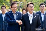 [신경북뉴스] 이철우 경상북도지사는 10일, APEC 현장점검을 위해 경주를 방문한 김민석 국무총리와 함께 행사 관련 시설을 점검하고, APEC 준비지원단, 경찰, 소방 공무원 등 근무 인력을 격려했다. 이날 취임 후 6번째 경주 현장을 방문한 김민석 총리는 이철우 경상북도지사, 주낙영 경주시장 등과 함께 직원을 격려한 후 정상숙소 PRS와 정상회의장인 화백컨벤션센터를 점검하고 동국대 경주병원을 찾아 응급의료센터와 VIP 전용 병동을 둘러보면서 APEC 응급의료 준비상황에 대한 보고를 받았다. 경상북도 APEC 준비지원단 사무실을 방문한 김 총리는 지원단 직원을 비롯하여, 소방, 경찰 등 그동안 현장에서 APEC 준비를 위해 노력해 준 직원들을 격려하고, 20여 일 남은 정상회의가 성공적으로 개최될 수 있도록 마지막까지 수고해 달라고 당부했다. 특히 추석 연휴에도 행사 준비를 위해 애쓴 직원들에게 감사의 뜻을 표했다. 직원 격려 간담회 후 김 총리와 이철우 지사 등 일행은 PRS 숙소와 정상회의장 준비상황을 점검했다. 이후 동국대 병원으로 자리를 옮긴 김민석 총리 일행은 리모델링을 마친