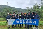 [신경북뉴스] 영덕군 영덕읍사무소 직원 10여 명은 지난 21일 관내의 한 사과 과수원을 찾아 농촌 일손 돕기 봉사활동을 펼쳤다. 이번 봉사활동은 본격적인 수확철을 앞두고 일손 부족에 시달리는 농가를 지원하기 위함으로, 참여 직원들은 궂은 날씨 속에서도 구슬땀을 흘리며 사과 수확을 앞두고 잎을 제거하는 ‘잎 소지 작업’에 나섰다. 잎 소지는 사과의 착색과 당도 향상을 위해 꼭 필요한 과정이지만, 많은 시간과 인력이 필요해 일손 부족을 겪고 있는 농가에 부담으로 작용한다. 장덕식 영덕읍장은 “직원들이 농가의 어려움을 직접 느끼고 주민들과 소통하면서 더 나은 행정이 현장이 있음을 깨달았을 것”이라며, “지역공동체의 한 구성원으로서 앞장서 함께 어려움을 나누고 모범을 실천할 수 있도록 하겠다”라고 전했다.