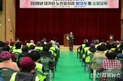 [신경북뉴스] 대가야읍은 2026. 1. 12. 2026년 노인일자리 참여자 등 350명을 대상으로 고령군민체육관에서 노인일자리 발대식 및 안전교육을 실시했다. 이번 발대식 및 교육은 2026년 노인일자리사업의 본격적인 시작을 알리고, 참여 어르신들의 직무 이해도를 높이는 한편 활동 중 발생할 수 있는 각종 안전사고를 예방하기 위해 마련됐다. 교육은 사업 전반에 대한 안내와 함께 직무교육, 활동 중 사고 예방을 위한 안전교육 중심으로 진행됐다. 대가야읍 노인일자리 및 사회활동지원사업은 2026년 1월부터 11월까지 총 11개월간 운영될 예정으로, 공원·놀이터 등 야외 근린시설지원, 경로당 깔끄미 사업, 스쿨존 교통지원, 이웃주민과 나누는 수세미 사업, 지역사회 환경개선 지원 등 총 5개 구역으로 운영된다. 이를 통해 지역사회 환경 개선과 주민 편의 증진에 기여함과 동시에 어르신들의 사회참여 기회 확대와 경제적 활력 제공에 기여할 것으로 기대된다. 최용석 읍장은 “노인일자리 사업이 어르신들께 경제적인 도움은 물론 사회적 역할 수행을 통해 건강하고 활기찬 노후를 보내시는 데 보탬이 되기를