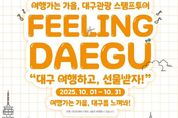 [신경북뉴스] 대구광역시와 대구문예술진흥원관광본부는 문화체육관광부 ‘여행가는 가을’ 캠페인을 연계하여 10월 한 달간 대구를 방문하는 관광객 대상으로 스탬프투어 이벤트를 운영한다. 민족 대명절 추석을 맞아 고향을 찾는 귀성객과 가을 여행을 즐기는 국내 관광객들이 대구의 매력을 새롭게 발견할 수 있도록 이벤트를 마련했다. ‘여행가는 가을’은 문화체육관광부, 행정안전부, 농림축산식품부, 해양수산부 등 4개 부처와 관광업계가 협력하여 추진하는 범국민 여행 캠페인으로 교통, 숙박, 여행상품 할인과 다양한 프로그램을 통해 국내관광 수요를 촉진하는 대규모 프로젝트다. 진흥원 관광본부는 이번 캠페인에 발맞춰 대구관광 스탬프투어 이벤트를 통해 대구 여행을 독려한다. 10월 1일부터 31일까지 운영되며, 참여 방법은 스마트폰 앱 '스탬프 투어'를 다운로드 받고 관광지 47개소 중 4개소 스탬프를 획득하여 선물을 신청하면 된다. 구·군별 추천 관광지 및 대구문화예술진흥원 내 시설로 스탬프를 구성했다. 스탬프를 획득한 참가자에게는 추첨을 통해 다양한 경품이 지급된다. 강성길 대구