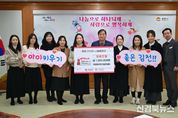 [신경북뉴스] 김천시 국공립어린이집연합회(회장 조경희)에서는 1월 26일, 경북사회복지공동모금회에 이웃돕기 성금 100만 원을 기탁했다. 김천시 국공립어린이집연합회(모암어린이집외 7개소)는 보육의 질 향상을 위해 다양한 활동을 통해 지역사회의 영유아보육 사업 발전에 기여하고 있으며, 해마다 그 뜻을 모아 나눔의 의미를 실천해 오고 있다. 조경희 회장은 “우리의 작은 정성이 이웃들에게 조금이나마 도움이 되기를 바라는 마음으로 국공립어린이집 모두가 한마음 한뜻으로 성금을 마련했다. 이번 성금이 꼭 필요한 이웃들에게 따뜻한 위로가 됐으면 좋겠다.”라고 말했다. 배낙호 시장은 “어려운 보육환경 속에서도 나눔을 실천하는 회장님과 회원분들께 감사드리며, 우리시는 모든 아이가 안전하고 행복한 보육환경에서 성장할 수 있도록 양질의 보육 서비스를 제공하는 데 최선을 다하겠다.”라고 말했다.