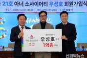 [신경북뉴스] 안동시는 1월 21일 안동시청에서 ㈜웅비건설․제이에스건설기계 우성호 대표의 안동 21호(경북 196호) 아너소사이어티 가입식을 가졌다. 이날 가입식에는 경북사회복지공동모금회 손병일 사무처장이 참석해 인증패를 전달했으며, 권기창 안동시장은 이웃사랑과 나눔 실천에 대한 감사의 뜻을 전했다. ‘아너소사이어티(Honer Society)’는 사회복지공동모금회가 운영하는 1억 원 이상 개인 고액 기부자 모임이다. 우성호 아너는 이번 가입과 동시에 2천만 원 기부를 시작으로 5년 이내 1억 기부를 약속했다. 우 대표는 평소에도 나눔에 관심을 갖고 꾸준히 기부 활동을 이어왔으며, 주변의 아너소사이어티 회원들의 나눔 실천을 접하며 가입을 희망해 왔다. 특히 이번 ‘희망2026 나눔캠페인’에 500만 원을 기탁한 것을 계기로, 아너소사이어티 가입까지 이어지며 나눔 실천의 뜻을 더했다. 우성호 대표는 “오래전부터 관심을 갖고 있었는데 아너소사이어티에 가입하게 돼 뜻깊고 마음이 벅차다”며 “앞으로도 꾸준히 기부를 이어가며 지역사회에 도움이 되고 싶다”고 말했다. 권기창 안동시장은 “큰 마음으로