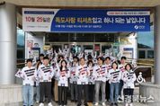 [신경북뉴스] 영양군은 10월 24일 오전 독도의 날을 기념해 군청사 입구에서 오도창 영양군수를 포함한 공직자 60여 명이 참석한 가운데 ‘독도 사랑 티셔츠 입기 운동’행사를 진행했다. 영양군의 공직자들부터 앞장서서 독도 사랑 티셔츠를 입고 근무하면서 독도의 날 의미를 되새기고, 온 국민 하나 되기 운동에 동참하는 모습을 보였다. 이날 행사는 지난 1900년 10월 25일 대한제국의 고종황제가 독도를 울릉도에 편입시키는 칙령 제41호를 반포한 역사적으로 뜻깊은 날을 기념하기 위해 직원들 모두 독도 사랑 티셔츠를 입고 태극기를 손에 들고 우리 땅 독도 지키기 운동에 앞장설 것을 다짐하는 계기가 됐다. 오도창 영양군수는 “독도의 날 행사를 통해 영양군민 모두가 독도에 대한 더 많은 관심과 애정을 가졌으면 한다.”라며 “‘독도 사랑 티셔츠 입기 운동’은 알고는 있지만 행동으로 실천하기 힘든 독도 사랑을 이번 기회를 통해 나타내며, 공직자부터 먼저 독도사랑에 앞장서는 모습을 보여줌으로써 우리 고유 영토의 소중함을 다시금 되새기는 순간이 됐길 바란다.”라고 말했다.