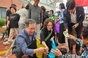 [신경북뉴스] 군위군은 10월 3일 군위전통시장에서 추석맞이 장보기 행사를 열고 전통시장 활성화와 명절 맞이 분위기 확산에 나섰다. 이번 행사는 군위군 자원봉사센터의 꽃피는 오일장과 연계해 다채로운 볼거리와 즐길거리를 제공하며 장터를 찾은 주민과 방문객들에게 풍성한 시간을 선사했다. 이날 행사에는 김진열 군수가 직접 시장을 방문해 상인과 군민들에게 따뜻한 인사말씀을 전했다. 이어 무대에 올라 노래를 선보이며 흥겨운 분위기를 이끌었고, 고고장구팀의 신명 나는 장단에 맞춰 주민들이 함께 어울려 춤을 추며 한가위의 정을 나눴다. 또한 김진열 군위군수는 장보기 행사에 직접 참여해 제수용품을 구매하여 상인들과 소통했고, 방문객들과도 일일이 인사를 나누며 명절 인심이 가득한 장터 분위기를 더했다. 김진열 군위군수는 “앞으로도 우리 전통시장이 활력을 되찾고, 군민들이 더 자주 찾는 매력적인 공간이 될 수 있도록 아낌없는 지원을 다하겠다”며 “민족 최대의 명절인 한가위를 맞아 군민 여러분 가정에 건강과 행복이 가득하시기를 기원한다”고 말했다.