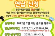 [신경북뉴스] 김천시는 환경개선부담금 부과 대상 경유 자동차를 소유한 자를 대상으로 2026년 1월 16일부터 2월 2일까지 환경개선부담금 일시 납부(연납) 신청을 받는다. 환경개선부담금은 관련 법에 따라 경유 자동차를 대상으로 매년 2회(3월, 9월) 정기 부과되고 있으며, 일시 납부(연납)를 신청할 경우 환경개선부담금의 10%를 감면받을 수 있다. 연납분 산정 적용 기간은 2025년 7월 1일부터 2026년 6월 30일까지이며 2026년 1월 1일 이후 자동차 소유권을 획득한 경우에는 당해 연도 일시 납부 대상이 되지 않는다. 연납 고지서 수령 후 기한 내 납부하지 않으면 연납 고지가 자동 취소되어 정기분(3월, 9월)에 부과되므로 유의해야 한다. 기존 연납 신청자는 별도의 신청 절차 없이 우편 발송된 고지서로 납부하거나 인터넷 위택스(wetax)로 납부할 수 있으며, 신규 신청자는 위택스(wetax)를 통해 연납 신청 후 바로 납부 또는 김천시 환경위생과로 신청하면 된다. 김천시 관계자는 “환경개선부담금 연납을 통해 10%를 감면받을 수 있는 만큼 시민의 경제적 부담을 줄이고 환경