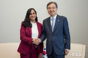 [신경북뉴스] 조현 외교부 장관은 9월 25일 오후 유엔본부에서 아니타 아난드(Anita Anand) 캐나다 외교장관과 상견례를 겸한 회담을 갖고, 고위급 교류를 포함한 양국 관계 전반, 미래 실질 협력 방안, 지역 및 국제정세 등에 대해 의견을 교환했다. 조 장관은 올해 한국과 캐나다 신정부 출범 이후 6월 G7 정상회의 계기에 양국 정상회담 개최에 이어 이번 외교장관회담을 통해 양국간 고위급 교류가 지속되고 있어 기쁘다고 하고, 한-캐나다 '포괄적 전략 동반자(Comprehensive Strategic Partnership)' 관계를 보다 더 발전시켜 나가자고 했다. 아난드 장관은 캐나다가 인태지역에 대한 관여를 보다 확대해 나가는 데 있어 한국은 신뢰할 수 있는 파트너라고 하면서, 캐나다가 안보·경제 파트너십 및 에너지 공급망을 다변화하고, 안보·방산 역량을 발전시켜 나가는 과정에서 한국과 긴밀히 협력해 나가기를 바란다고 했다. 조 장관은 한반도 평화·안정을 위한 우리의 대북 정책을 설명하고, 우리의 노력에 대한 국제사회의 이해 제고 및 지지 확산을 위해 G7 의장국인 캐나다의 역할을 당부했다. 아난드 장