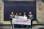 [신경북뉴스] 경산시는 27일 세종시 코트야드 메리어트에서 열린 농림축산식품부 주관의 2025년 친환경농자재 지원사업 연찬회에서 '친환경농자재 지원사업 평가' 우수 기관상을 수상했다고 밝혔다. 이번 우수 기관상 수상은 전국 광역․기초단체를 대상으로 친환경농자재 실적을 평가한 것으로 경산시는 유기질 비료 등 비료 보급 및 예산집행, 토양 환경 개선, 적정 식비 지도, 비료 품질관리 등에서 우수한 성적을 보이며 높은 평가를 받았다. 농림축산식품부는 지속적인 토양 환경 개선과 농업생산력 유진․증진을 위해 2017년부터 매년 정량과 정성평가를 통해 우수 시군을 평가하고 있다. 경산시는 정부에서 지원하는 유기질, 토양개량제 보급 외 친환경 퇴비, 부산물비료, 완효성 비료 등 자체적으로 추가 예산을 편성하여 지속적인 부족 민원을 해소하는 등 농가 경영비 절감에 힘쓰고 있다. 또한 관내에서 생산되는 농림축산 부산물의 재활용과 자원화를 위해 관내 생산업체 부산물비료 구입 시 포당 300원을 추가로 지원하고있다. 이희수 농업기술센터 소장은 “앞으로도 지속적인 유기질 비료와 토양개량제 공급으로 토양 환경을 보전하고