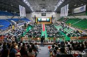 [신경북뉴스] 영주시는 지난 25일 영주국민체육센터에서 ‘국가책임 유보통합 차별 없는 아이행복’을 슬로건으로 한 ‘2025 경상북도 보육인 한마음대회’를 개최했다. 이번 대회는 경북 도내 어린이집 보육교직원 2,700여 명이 한자리에 모여 유보통합 시대의 새로운 보육 비전을 공유하고, 서로의 노고를 격려하는 화합과 소통의 장으로 마련됐다. 행사에는 유정근 영주시장 권한대행을 비롯한 김학홍 경상북도 행정부지사, 박성만 경상북도의회 의장, 임이자 국회의원, 정영석 경상북도교육청 유초등교육과장, 김병기 영주시의회 의장, 경북도의회 및 영주시의회 의원, 영주교육지원청 관계자, 육아종합지원센터 관계자 등 주요 내빈이 참석해 자리를 빛냈다. 이날 행사에서는 보육발전에 기여한 교직원들에게 감사의 뜻을 전하기 위해 △도지사 표창 63명 △도교육감 표창 20명 △도의회 의장 표창 20명 △한국어린이집총연합회장 표창 16명 등에게 표창이 수여됐다. 이와 함께, 유정근 영주시장 권한대행은 경북어린이집총연합회로부터 공로패를 수상하며 보육 환경 개선과 교직원 처우 향상에 기여한 공로를 인정받았다. 식후에는 초