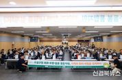 [신경북뉴스] 수성글로벌ESD실천연대(회장 김명숙)는 지난 27일 동성로28아트스퀘어 일대에서 '2025 지구를 위한 기후행동'행사에 참가해 ‘플라스틱 보상운동’을 주제로 ‘뚜비 다회용 천주머니 사용 캠페인’을 펼쳤다. 패션과 섬유의 도시로 불리던 대구에서 폐 합성섬유 원단이 다량으로 버려지고 있는 실정을 알게된 실천연대는 버려지는 폐섬유 원단을 기부받아 다회용 천주머니를 만들었다. 천주머니에는 수성구 캐릭터 ‘뚜비’ 라벨을 회원들이 직접 부착했으며, 시민들에게 배포하며 일회용 비닐봉투 사용을 줄이기 위한 홍보 활동을 전개했다. 일회용 비닐 봉투를 대체할 다회용 천주머니 사용은 생활 속에서 쉽게 실천할 수 있어 캠페인 효과가 클 것으로 기대된다. 또한, 실천연대는 플라스틱 과다 사용으로 인한 기후 위기를 인식하고 미래세대를 위해 보상하자는 의미를 담아 ‘플라스틱 보상운동’이라는 활동 주제로 환경운동을 지속할 계획이다. 김대권 수성구청장은“플라스틱 줄이기와 다회용 천주머니 사용은 단순한 불편이 아니라, 우리아이들과 미래세대에게 깨끗한 지구를 물려주기 위한 선택”이라며 “지속 가능한 수성구