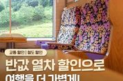 [신경북뉴스] [교통 할인] 철도 할인 ◆ 반값 열차 할인으로 여행을 더 가볍게! 서해금빛열차, 남도해양열차, 동해산타열차, 백두대간협곡열차, 정선아리랑열차 관광열차 5개 정기노선 50% 할인 - 판매기간: 9.16.(화)~11.9.(일) / 이용(탑승)기간: 10.13.(월)~11.16.(일) - 판매처: 코레일 기차표 예매 누리집 & 앱