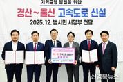 [신경북뉴스] 경산시는 17일 국회 본관 소회의실에서 조지연·권영진 국회의원, 조현일 경산시장, 김학홍 경북도 행정부지사, 안효대 울산시 경제부시장 등 관계 지자체 및 국회 관계자 20여 명이 참석한 가운데 경산~울산 고속도로 신설의 국가 계획 반영을 건의하며, 범시민 서명부와 3개 지자체장의 공동선언문을 국토교통부에 공식 전달했다. 이날 경산시는 경산~울산 고속도로 신설을 촉구하는 범시민 서명부(160,123명)와 함께, 경북도·울산시·경산시가 공동으로 뜻을 모은 선언문을 전달하며, 김윤덕 국토부 장관에게 사업의 필요성과 제3차 고속도로 건설계획 반영을 요청했다. 이와 함께 권영진 국회의원도 함께 참석하여 뜻을 모았다. 경산~울산 고속도로는 영남 내륙과 동남권 산업권을 직접 연결하는 핵심 교통축으로, 이동 거리 단축과 물류 효율성 제고를 통해 지역 간 산업 연계 강화와 초광역 경제권 형성에 기여할 것으로 기대되고 있다. 특히 자동차부품 산업이 집적된 경산과 완성차 산업의 중심지인 울산을 직결함으로써, 기존 우회·경유 구조로 인한 물류 비효율을 개선하는 기반이 될 수 있다는 평가다. 이 과정에서 경산시는 조지연 국회의원과 긴밀히 협력하며, 관계 지자체 간 공