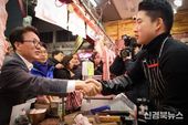 [신경북뉴스] 이재명 대통령과 김혜경 여사는 오늘 낮, 설 명절을 앞두고 충북 충주시에 위치한 무학시장을 찾아 지역 세밑 물가를 점검하고 상인들을 만나 현장 의견을 청취했다. 무학시장은 지난 1978년 노점상들의 정착을 위해 개설된 전통시장이며, 이번 방문은 설 민심을 청취하기 위한 민생 행보의 일환이다. 이 대통령과 김 여사는 시장 내 여러 상점을 들러 “새해 복 많이 받으세요”라며 인사를 했고, 상인과 시민들은 환호와 박수로 이 대통령 부부를 맞았다. 이 대통령 부부에게 더덕을 판매한 상인은 “덕분에 마수걸이를 한다”며 “오늘 장사가 잘될 것 같다”고 말해 웃음을 자아냈다. 다른 상인들도 “힘나게 해주셔서 감사하다”, “너무 고생 많으시다”며 인사를 전했다. 이 대통령 부부는 황태포, 시금치, 곶감과 깐밤 등 제수용품과 먹거리를 구입했고 백도라지, 마른 멸치, 배추전 등을 즉석에서 맛보기도 했다. 이 대통령 부부는 온누리상품권과 현금으로 결제했다. 김 여사가 물건을 고르는 사이 이 대통령은 상인들에게 “장사는 잘 되느냐”, “곧 설인데 어떠시냐”고 물었다. 정육점 사장은 “대목 때는