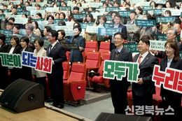 [신경북뉴스] 경상북도는 7일 경산시민회관 대강당에서 ‘제54회 보건의 날 기념식’을 개최했다. 이번 기념식은 도민의 보건의식을 높이고 건강생활 실천 분위기를 확산하는 한편, 지역 보건 발전에 기여한 유공자와 우수기관을 격려하기 위해 마련됐다. 이날 행사에는 황명석 경상북도지사 권한대행 행정부지사를 비롯해 이도형 경산시장 권한대행 부시장, 도의원 및 시의원, 일선 보건소 관계자와 보건의료 종사자, 지역주민 등 500여 명이 참석했다. 행사는 식전공연을 시작으로 유공자 및 우수기관 포상, 기념 퍼포먼스, 보건의 날 노래 합창 순으로 다채롭게 진행됐다. 보건의 날은 세계보건기구(WHO) 창립기념일인 4월 7일을 기념해 제정된 날로, 국민에게 건강의 소중함을 알리고 지역사회 보건을 위해 애쓰는 보건의료인들의 사기를 진작하는 데 의미가 있다. 올해 보건의 날 슬로건은 ‘건강이 기본이 되는 사회, 모두가 누리는 대한민국’으로, 이번 기념식을 통해 ‘건강은 개인의 책임을 넘어 사회가 함께 보장해야 할 기본권’이라는 인식을 지역사회와 공유했다. 행사장에서는 도민이 직접 참여할 수 있는