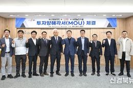[신경북뉴스] 문경시는 4월 27일 시청 제2회의실에서 신기제2일반산업단지 내 ㈜산청이식품 과 마성농공단지 내 ㈜하늘빛식품과 투자양해각서(MOU)를 체결했다. 이날 투자양해각서(MOU) 체결에는 이동욱 문경시장 권한대행, 이정걸 시의회 의장, 진후진 문경시의회 부의장, 신성호 문경시 의회운영위원장과 장동개 ㈜산청이푸드 대표, 김해수 ㈜하늘빛식품 대표 등 10여 명이 참석했다. 이번 투자양해각서를 체결한 ㈜산청이식품은 누룽지 제조 기업으로 신기제2일반산업단지 내에 HACCP 기준의 공장신축과 생산라인 신설 등 55억 원을 투자하고 20여 명을 고용할 계획이다. ㈜하늘빛식품은 육가공 및 농수산물 가공 기업으로 경기도 부천의 기존 공장을 문경 마성농공단지로 확장 이전하며, 107억 원을 투자하고 50여 명을 고용할 계획이다. 장동개 대표는 “문경시의 지역 농산물을 활용한 고품질 제품 생산을 통해 지역과 함께 성장하는 기업으로 자리매김하겠다”고 밝혔으며, 김해수 대표는 “문경의 우수한 농축산 자원을 활용해 경쟁력 있는 제품을 생산하고, 안정적인 공급체계를 구축해 나가겠다”며 “지역과 상생하며 지속적으로 성장하는 기업이