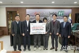 [신경북뉴스] 봉화군은 2월 24일 NH농협 재경봉화향우회 회원과 봉화군지부 직원들이 뜻을 모아 마련한 고향사랑기부금 1,100만원을 전달하며, 3년 연속 지역사회 발전과 고향사랑 실천에 동참했다고 밝혔다. 이번 기부는 권오규 봉화군 지부장을 비롯한 농협봉화군지부 직원과 김석현 NH농협손해보험 부장, 재경봉화군향우회원들이 고향에 대한 애정과 지역 발전에 보탬이 되고자 자발적으로 참여해 마련된 것으로 고향사랑기부제의 의미를 더 했다. 권오규 지부장은 “지난해에 이어 직원들이 마음을 함께 해 기부에 동참하게 됐으며, NH농협 재경봉화향우회원들도 함께 참여해 더욱 뜻깊다”며 “앞으로도 고향사랑기부제 활성화와 지역사회 발전을 위해 지속적으로 노력하겠다”고 말했다. 박현국 봉화군수는 “NH농협 직원들의 따뜻한 나눔과 지역사회를 위한 뜻깊은 실천에 깊이 감사드린다”며, “기택해 주신 기부금은 군민 복리 증진과 지역발전을 위한 소중한 재원으로 사용하겠다”고 말했다.