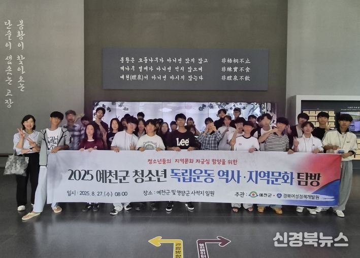 [신경북뉴스] 예천군은 27일, 관내 청소년 43명을 대상으로 예천·영양 일대 독립운동 유적지와 문화관광지를 탐방하며 지역문화에 대한 자긍심을 키우는 뜻깊은 시간을 가졌다.