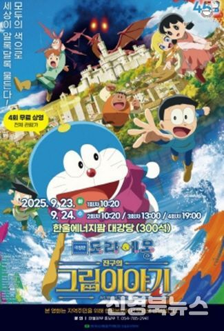 [신경북뉴스] 한국수력원자력(주) 한울원자력본부는 지역주민을 대상으로 9월 23일, 24일 양일간 한울에너지팜 대강당에서 극장판 애니메이션'도라에몽: 진구의 그림이야기'를 무료 상영한다.
