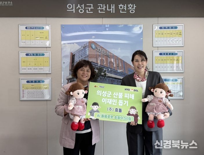 [신경북뉴스] 의성군은 ㈜효돌(대표 김지희)이 산불 이재민을 위해 AI 돌봄로봇 ‘효돌이’ 50점을 기부했으며 기탁식은 9월 18일 의성군 보건소에서 진행됐다.