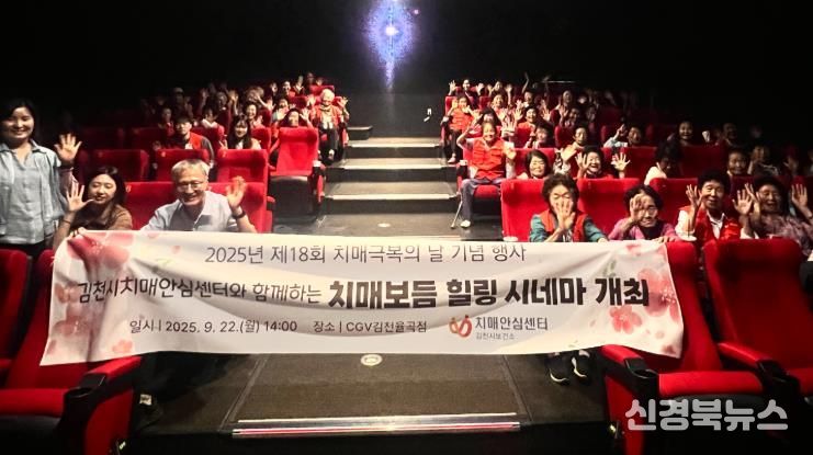 [신경북뉴스] 김천시치매안심센터는 지난 22일 ‘9월 치매 극복의 달’을 맞이해 관내 영화관(김천 율곡 CGV)에서 치매 보듬 마을 주민과 치매 환자가 함께하는 치매 극복 주간 문화 행사 '치매 보듬 힐링 시네마'를 개최했다.