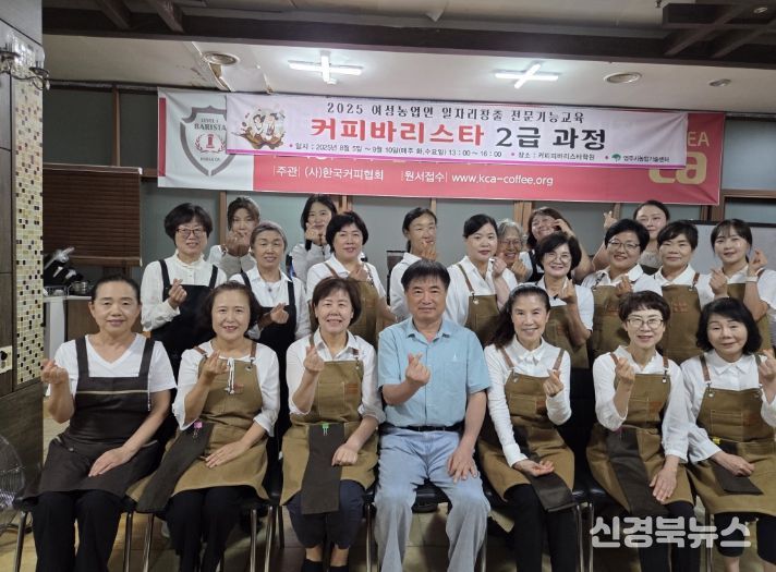 [신경북뉴스] 영주시는 여성농업인을 대상으로 운영한 ‘커피바리스타 2급 자격과정’에서 수료생 전원 22명이 자격증을 취득했다고 25일 밝혔다.
