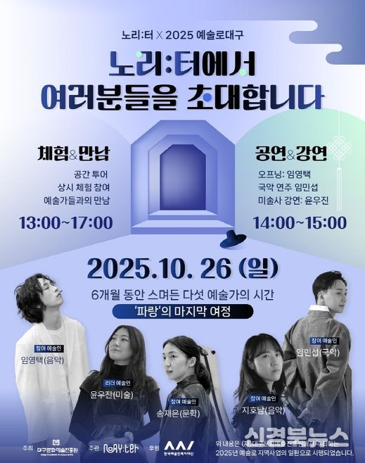 [신경북뉴스] 대구문화예술진흥원 문화예술본부는 ‘2025 예술인파견지원사업–예술로 대구’의 일환으로, ‘노리:터’와 협력해 추진한 예술 협업 프로젝트의 마지막 무대인 ‘선과 흥을 따라서: 김홍도와 신윤복’을 오는 10월 26일 오후 2시부터 개최한다.