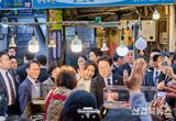 이재명 대통령 부부, 반송시장 방문해 상인들과 소통