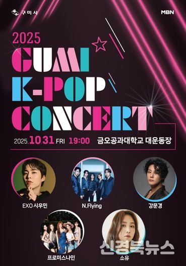 [신경북뉴스] 구미시는 오는 10월 31일 오후 7시, 국립금오공과대학교 대운동장에서 '2025 구미 K-POP 콘서트'를 개최한다. 이번 공연은 전 세대가 함께 즐길 수 있는 야외 콘서트로 마련됐다. 아이돌·발라드·밴드·트로트까지 아우르는 폭넓은 장르의 최정상급 아티스트들이 출연해 가을밤 구미를 화려하게 수놓는다.