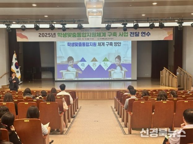 [신경북뉴스] 경상북도 김천교육지원청은 10월 13일 월요일, 김천학생문화예술센터 드림마루에서 관내 52개 초‧중‧고등학교 행정실장 및 업무담당자를 대상으로 2025년 학생맞춤통합지원체계 구축을 위한 전달 연수를 개최했다.