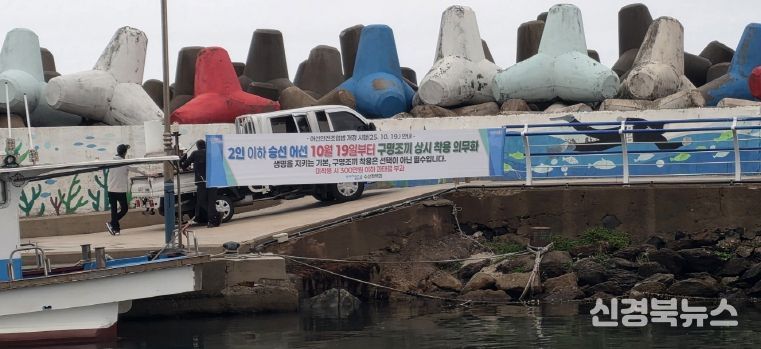 [신경북뉴스] 포항시는 이달 19일부터 ‘어선안전조업법’ 개정안이 시행됨에 따라, 승선원이 2명 이하인 어선은 기상특보와 관계없이 구명조끼를 반드시 착용해야 한다고 밝혔다.
