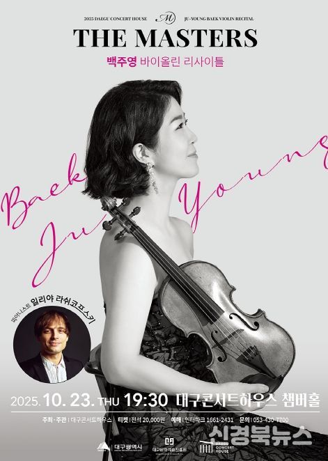 [신경북뉴스] 대구콘서트하우스의 독주회 시리즈 공연인 ‘The Masters’(이하 ‘더 마스터즈’)의 '백주영 바이올린 리사이틀'이 10월 23일 오후 7시 30분 대구콘서트하우스 챔버홀에서 개최된다.
