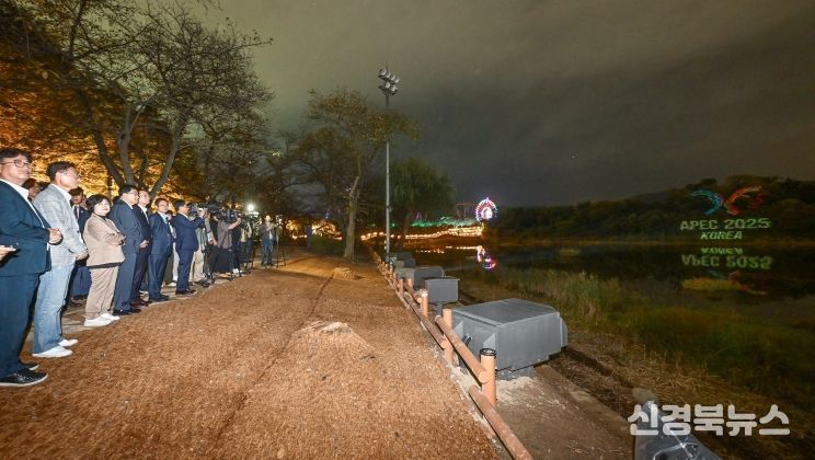 [신경북뉴스] 경상북도와 경주시는 15일 저녁, 보문관광단지 육부촌과 호반 광장 일원에서 이철우 도지사, 주낙영 경주시장 등 주요 내빈과 시민 100여 명이 참석한 가운데, APEC 보문단지 야간경관 개선사업 '빛의 향연' 시연회를 개최했다.